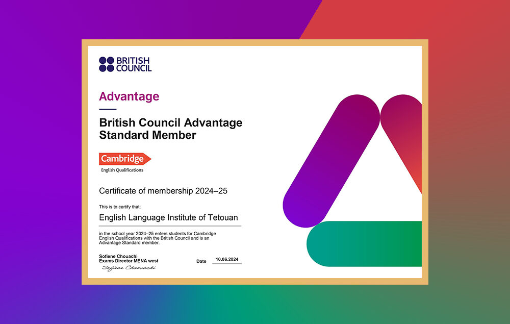 We are honored to announce that Elitetouan is now officially a member of the British Council Advantage Programme. This distinguished partnership is a clear evidence of our continual commitment, hard work and dedication to providing high-quality language education.