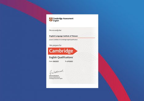 New Cambridge Assessment English recognition certificate 2023 للسنة الثامنة على التوالي توج معهد اللغة الإنجليزية Elitetouan بشهادة تقديرية من طرف القسم الخاص بإمتحانات تقييم اللغة الإنجليزية لجامعة كامبردج، تمنح هذه الشهادة فقط…October 9, 2022 -