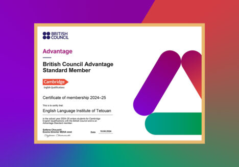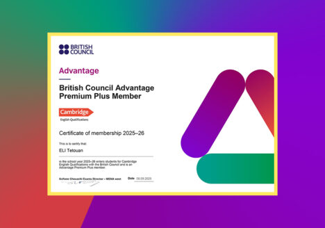 Elitetouan, a member of the British Council Advantage Premium Plus Programme 2025/2026 يسرّنا أن نعلن أن معهد Elitetouan قد حصل على شهادة Advantage Premium Plus الممنوحة من طرف المجلس الثقافي البريطاني، والتي…September 10, 2025 -